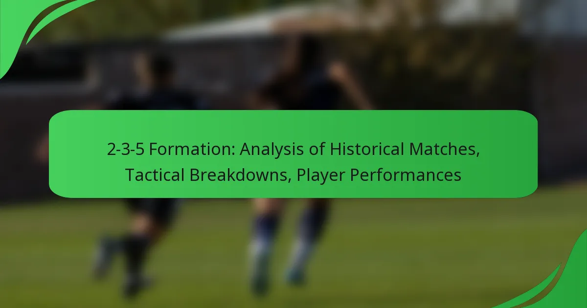 The 2-3-5 soccer formation is a classic tactical setup that prioritises offensive play, featuring two defenders, three midfielders, and five forwards. This formation is designed to create numerous scoring opportunities while maintaining a basic defensive structure, making it a popular choice for teams looking to dominate in attack. However, its reliance on a strong midfield can also expose defensive vulnerabilities if not managed effectively.