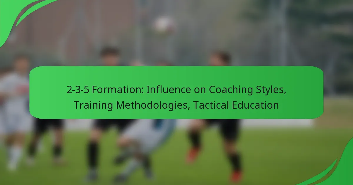 The 2-3-5 formation significantly influences coaching styles by emphasising offensive play and positional flexibility. Coaches adopting this formation often prioritise attacking strategies, requiring a shift in their training methodologies and tactical education to optimise player performance.